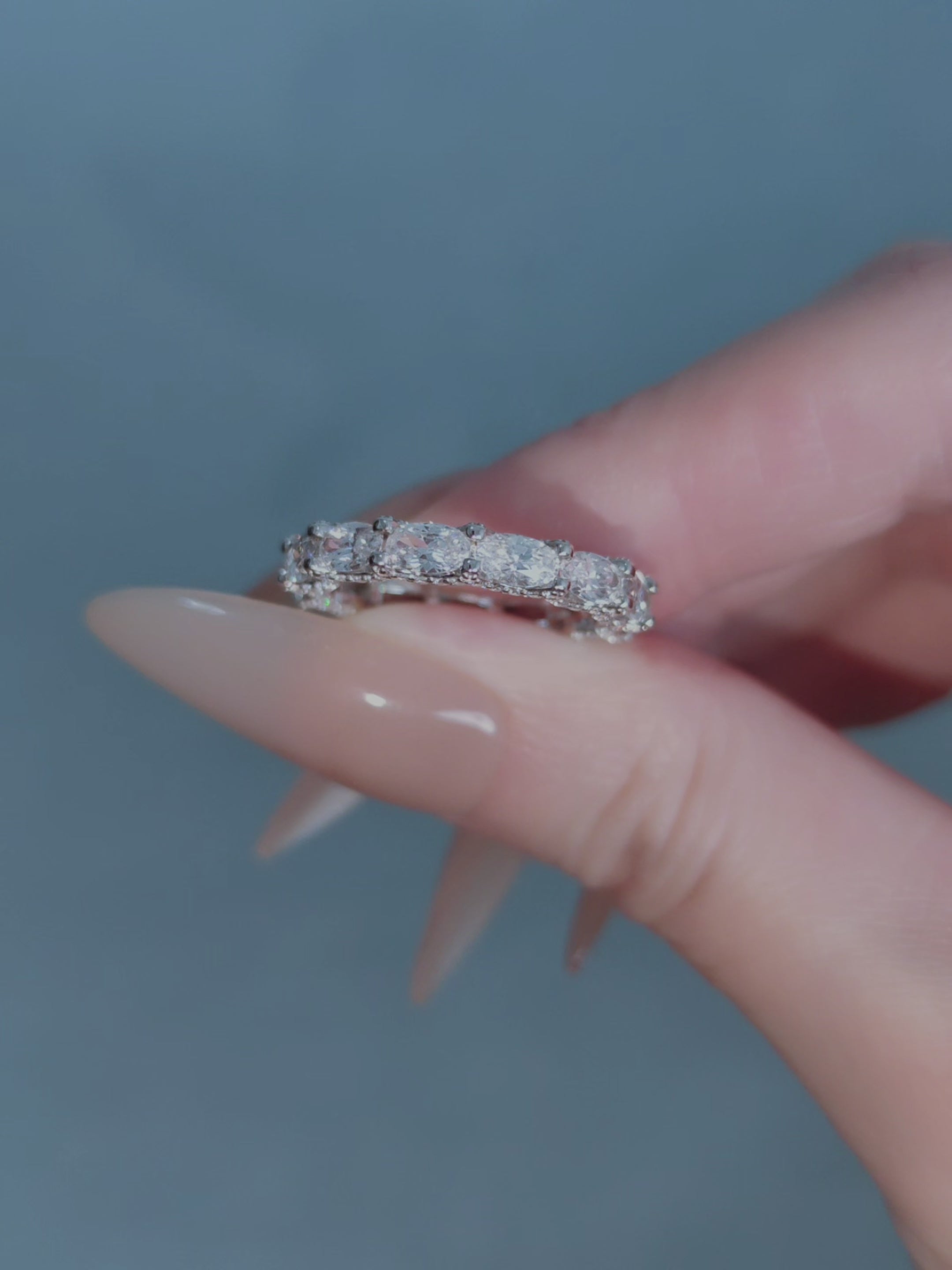 Emerald-cut stones are framed by delicate clusters of brilliant pavé, forming a refined pattern that evokes vintage lacework. The alternating silhouette creates a soft rhythm of light and line, offering both structure and grace. A timeless piece with heirloom allure and modern clarity.